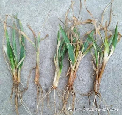 表現(xiàn)癥狀:1)幼苗。播種后種子受害,幼芽鞘受害呈褐色斑痕,嚴(yán)重時(shí)腐爛死亡。(2)根部。根部受害產(chǎn)生褐色或黑色病斑,根系少,植株莖基部出現(xiàn)褐色條斑,嚴(yán)重時(shí)莖折斷枯死。