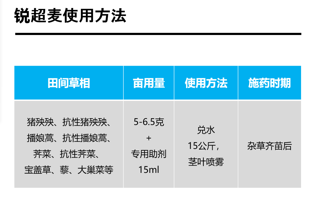 銳超麥——小麥各生長階段都可以用的除草劑!