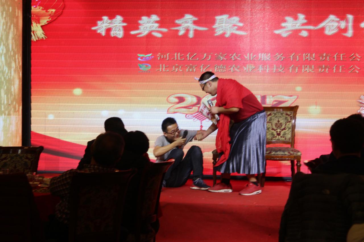 轉(zhuǎn)眼歲末,公司的年會如期而至,大家歡聚一堂,2017年1月17日,富億德公司、億萬家公司及億萬家河北分公司強強聯(lián)手,一起舉行了2016年終晚宴聯(lián)歡會。參加本次會議的人員除了公司的全體員工和公司領(lǐng)導(dǎo),還特別邀請了與公司合作的美國杜邦公司、美國陶氏益農(nóng)、先正達(dá)公司、上海芳甸,北京燕化等各大廠家代表。
